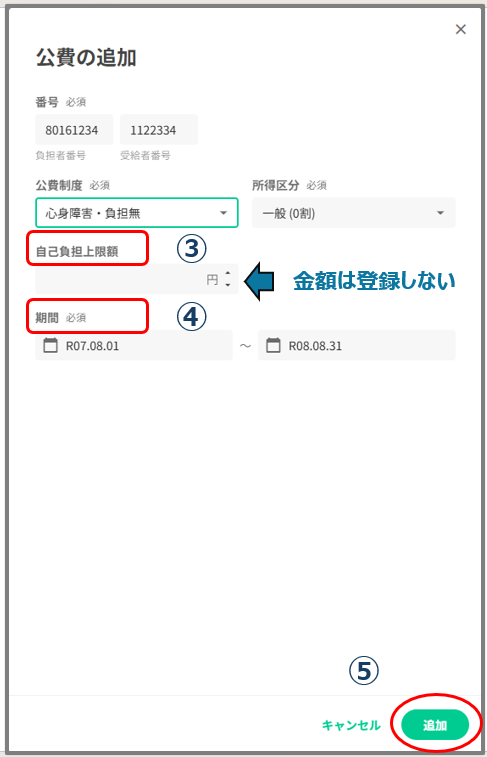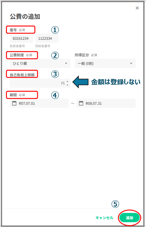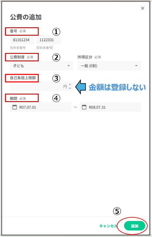 ①負担額になります。自己負担額は「自己負担なし」の場合で0円になります。