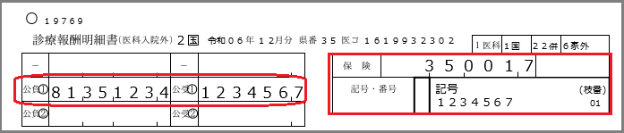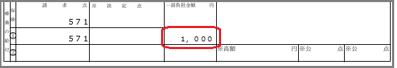 [国保+萩市・こども医療・外来1000・入院2000]の場合は公費欄に上限額を表記します