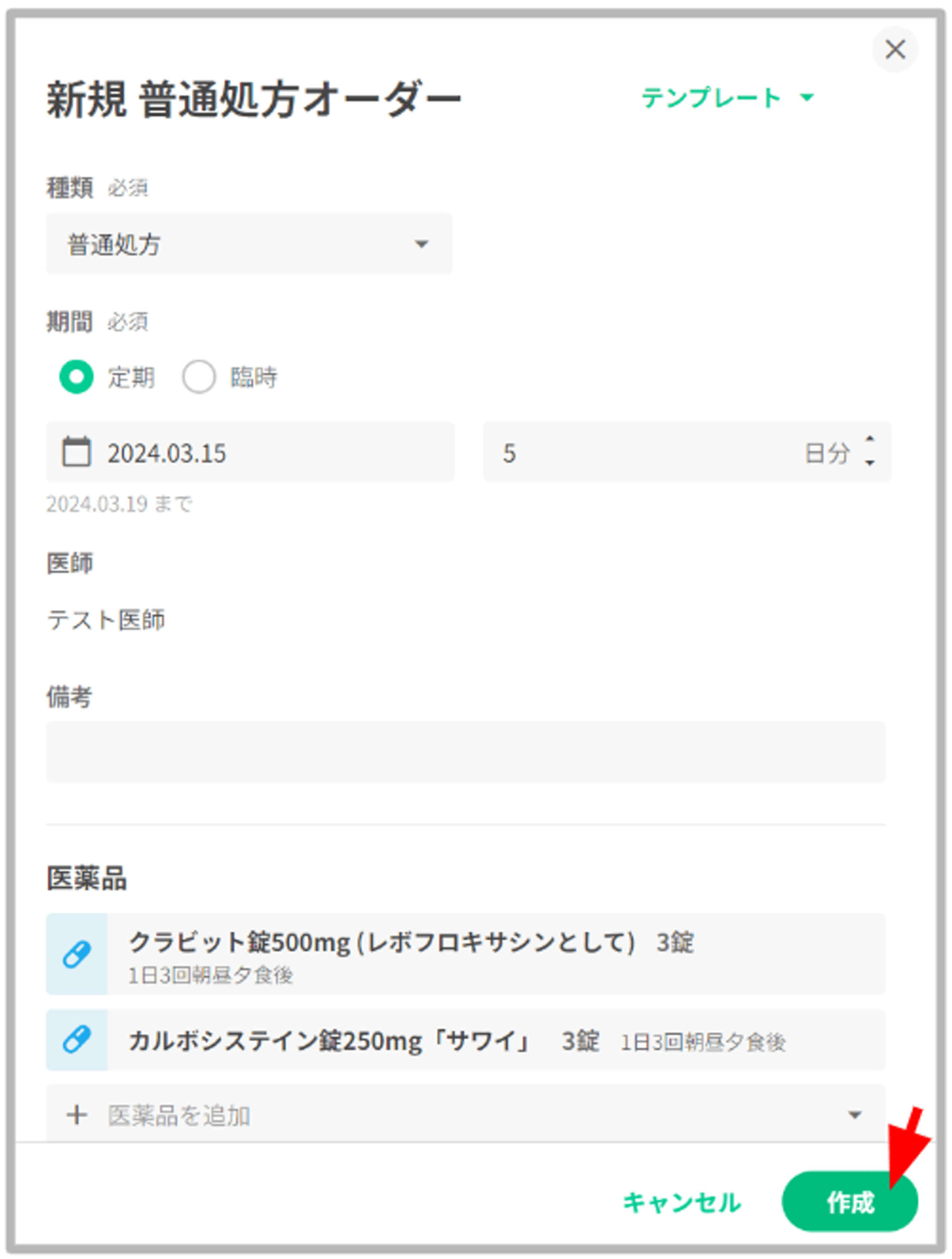 1.普通処方オーダーを作成する