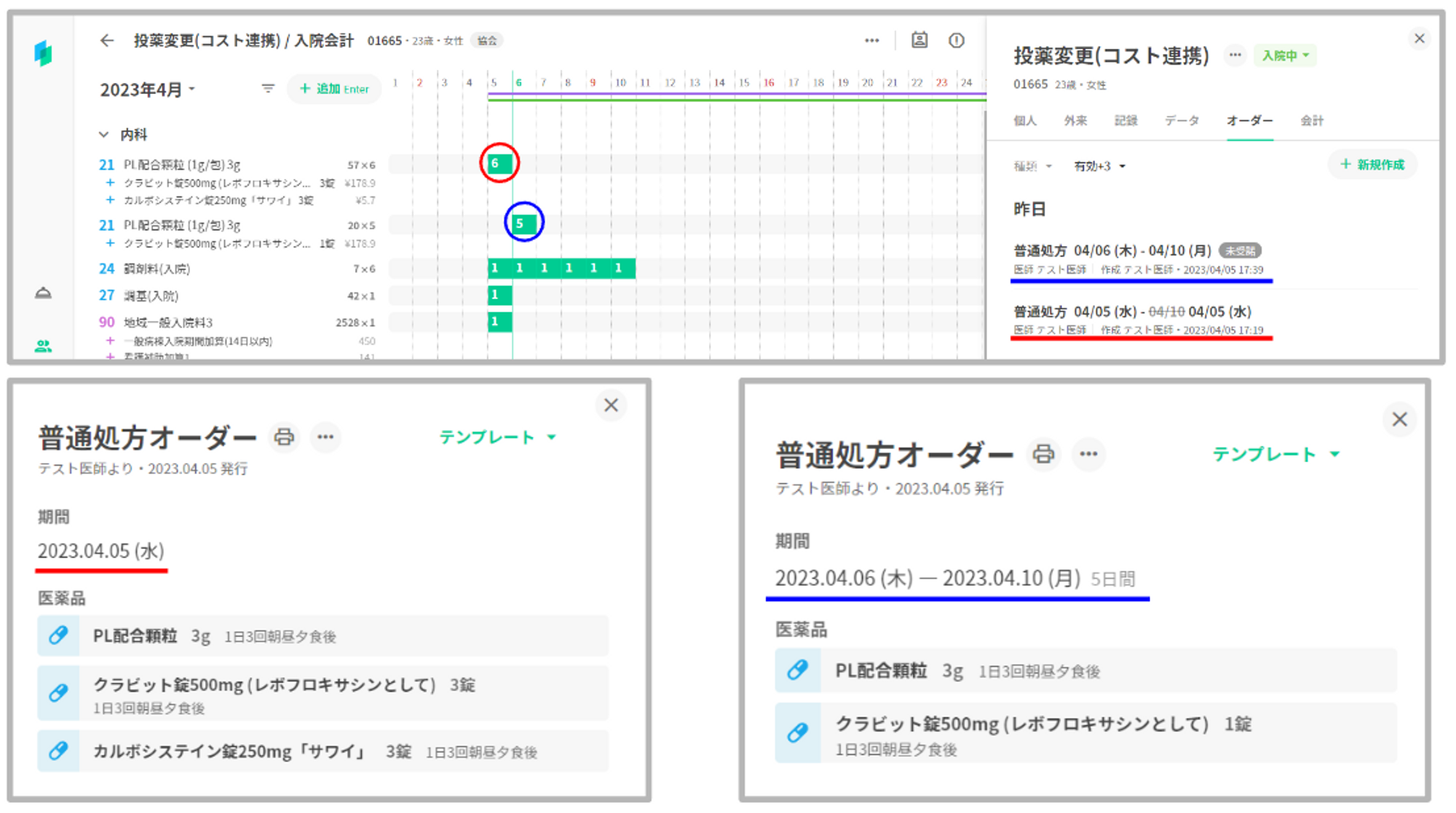 投薬オーダーの変更はコスト連携にも反映されますのでご注意ください。