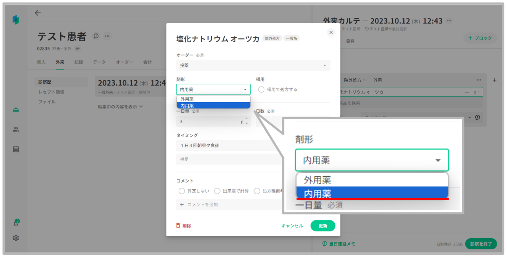 この記事では、複数の剤形を登録する方法と、処方オーダー登録時に剤形を選択する方法についてご説明します。
