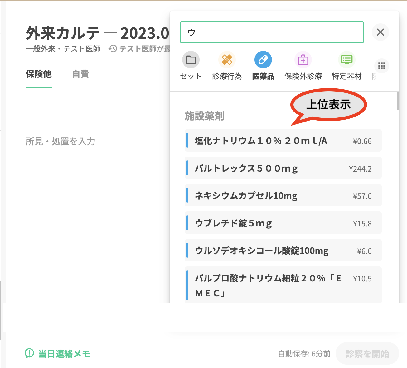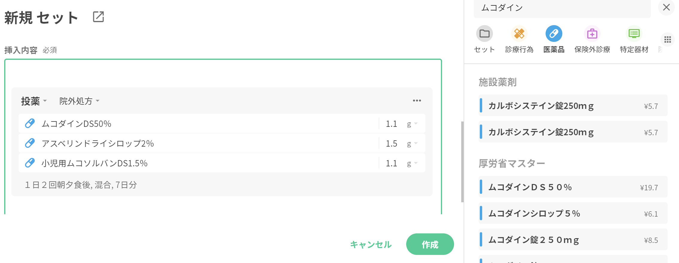 💡 頻用される処方についてはセット登録することで一から薬剤の検索や用法用量・タイミング、適応病名の設定が不要になるため、セット登録をおすすめします。