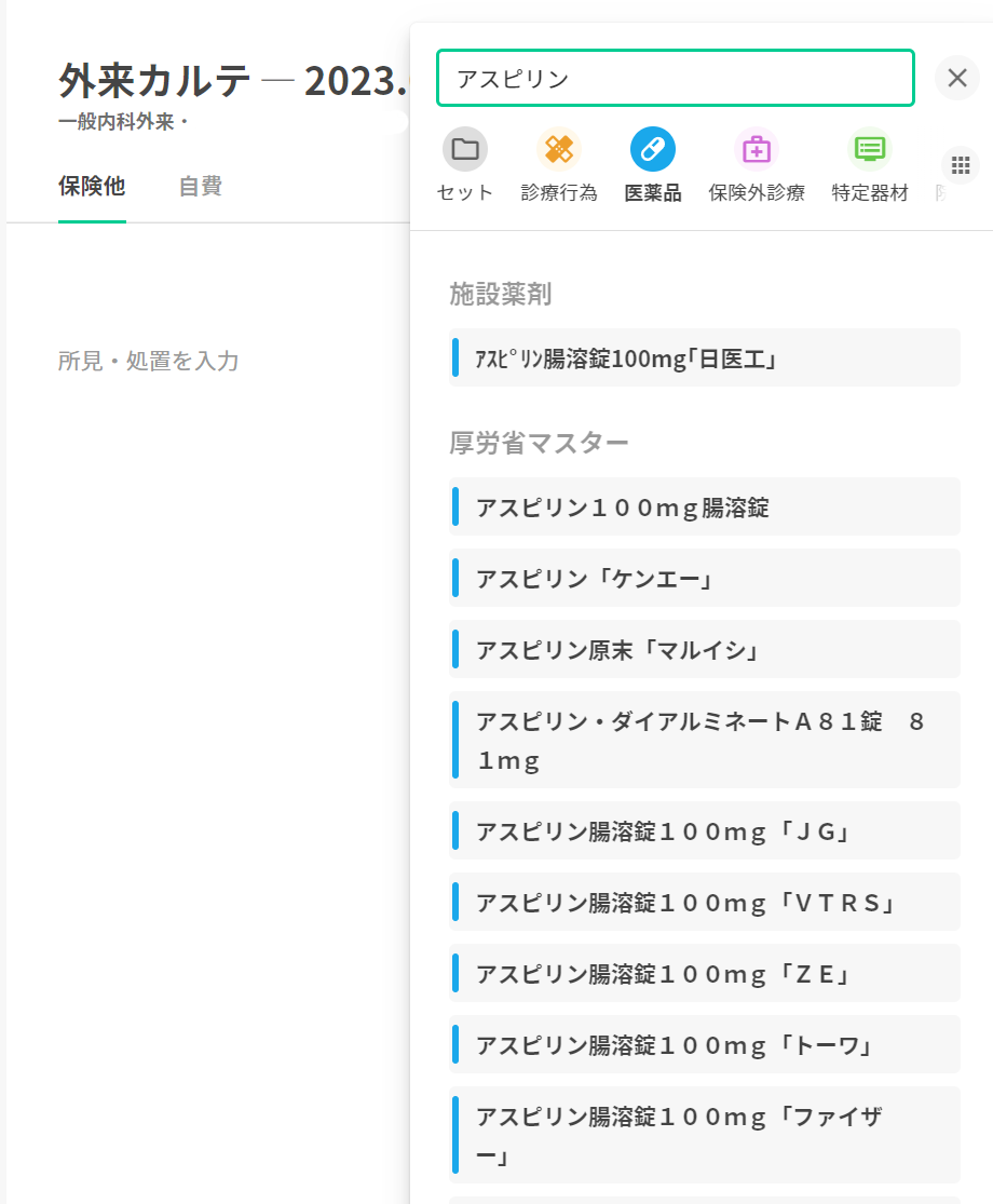 同一薬剤でも医療機関様によって実際に院内で採用しているメーカーが異なる薬剤が有ると思いますが、ヘンリー側で医療機関の施設ごとに採用している薬剤を登録することで、以下の二つを実現することが出来ます。