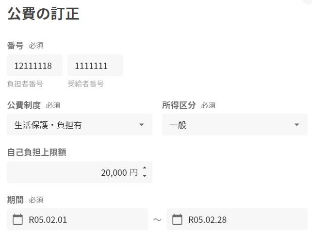 月毎に生保の自己負担上限額が変更になる場合は公費を切り替える必要があるため、保険組合せも保険の期間に合わせて変更が必要です。