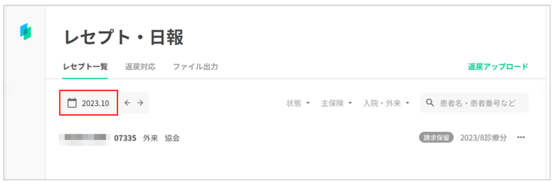 💡 「請求保留」としたレセプトデータは、翌月以降「レセプト一覧」画面の先頭に表示されます。