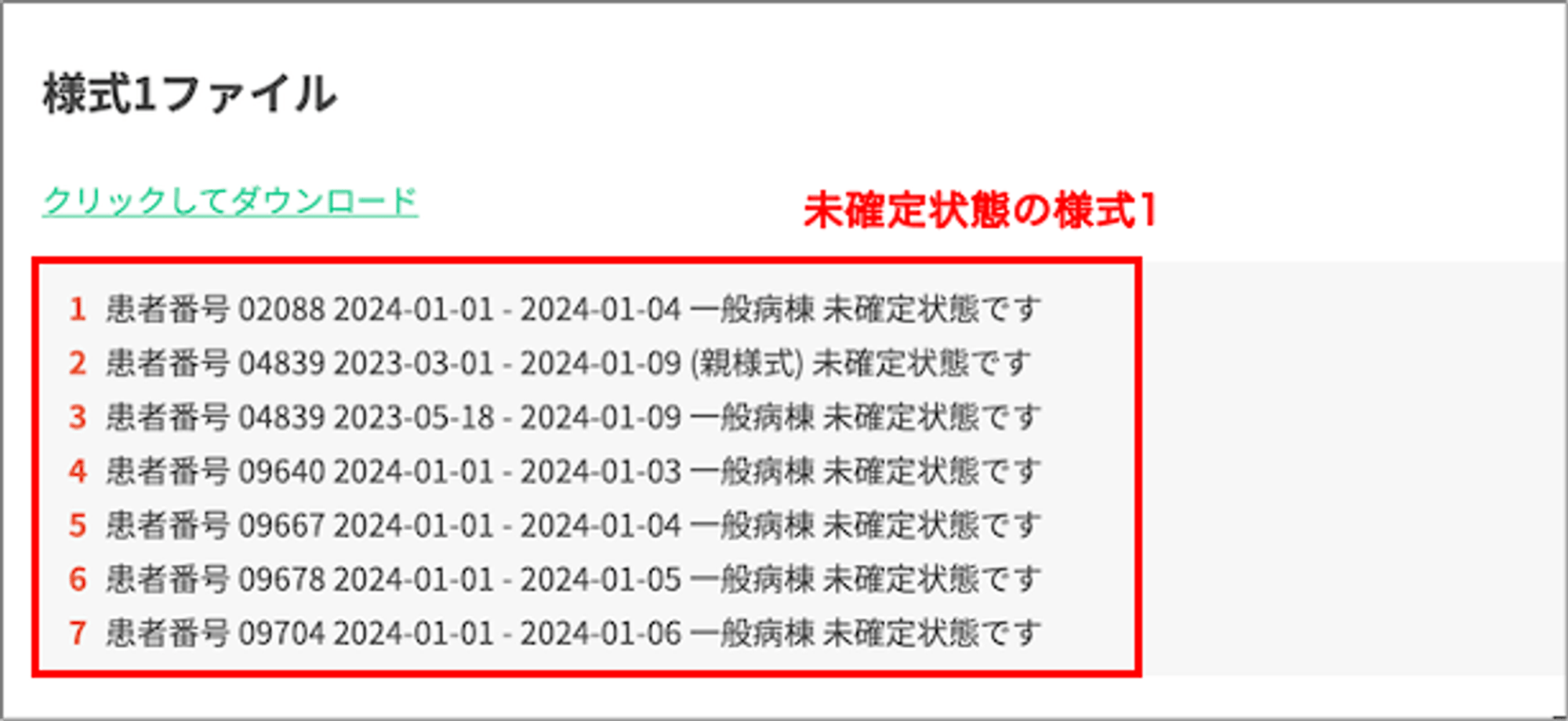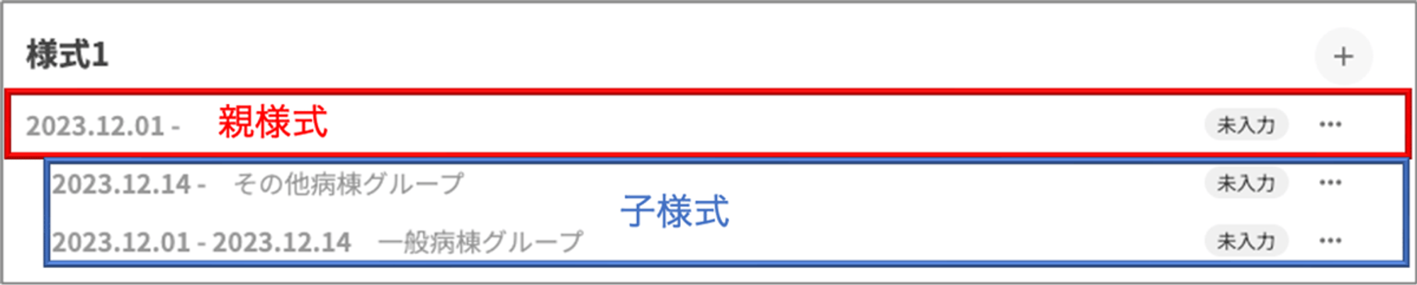 親様式/子様式につきましては、移動歴情報が作成された際に様式1の病棟区分に応じて自動的に作成されます。