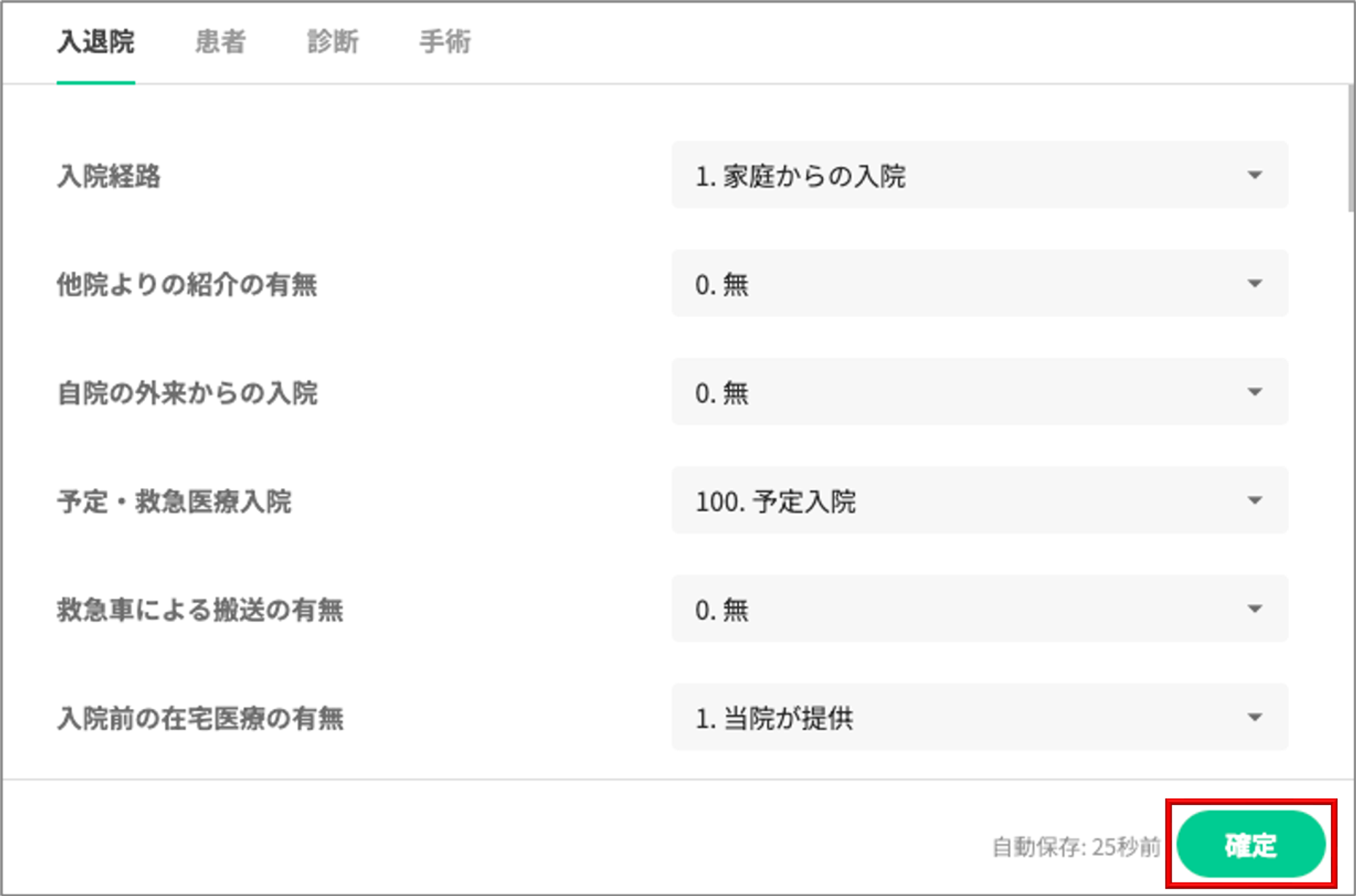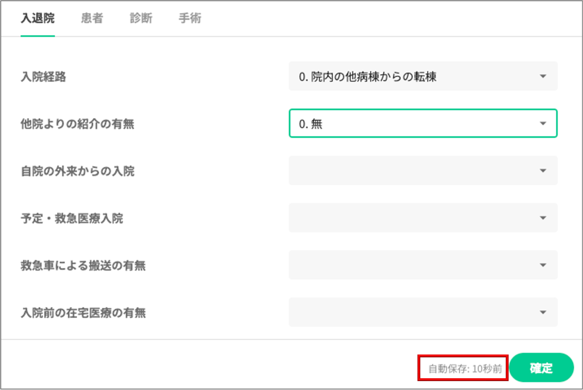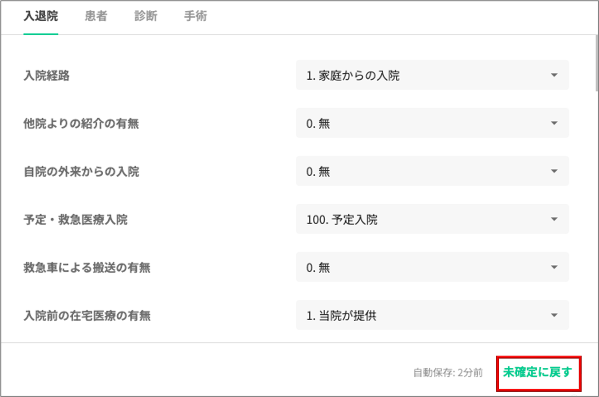 前回同一疾病で入院の例 | 入力欄 |