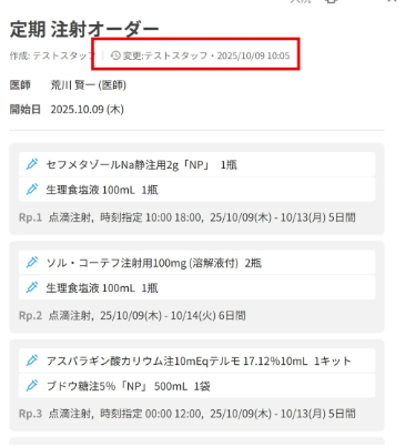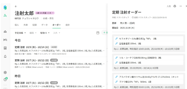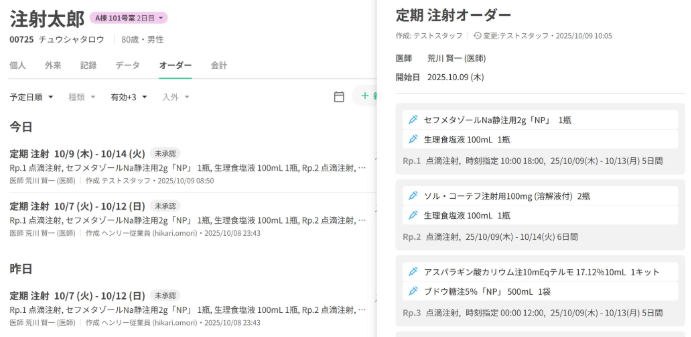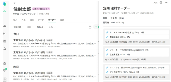 注射オーダーの一覧が表示されます