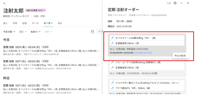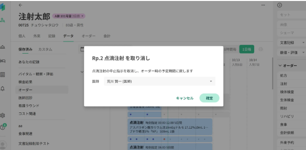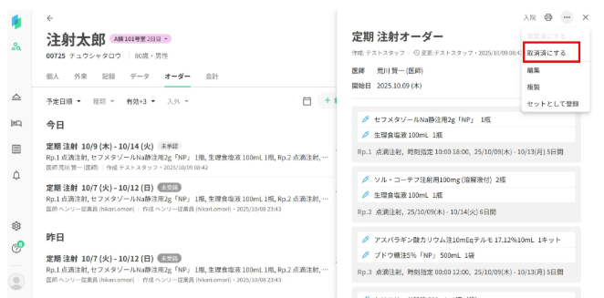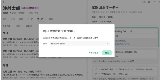 ただし、オーダー内のRpが全て未実施、(オーダーロック機能を有効にしている場合は)未監査の場合にのみ取消可能です
