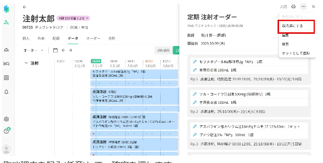 注射オーダーそのものを取りやめる行為を指します