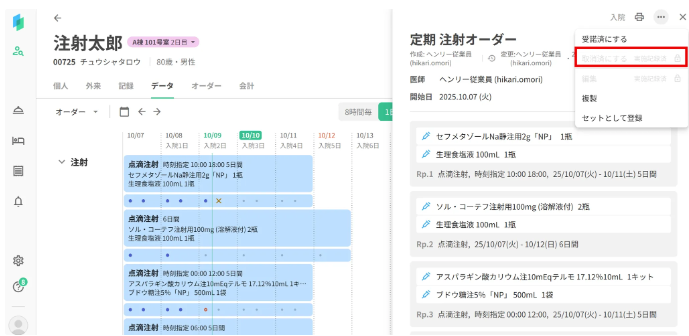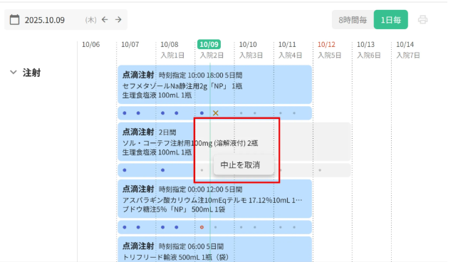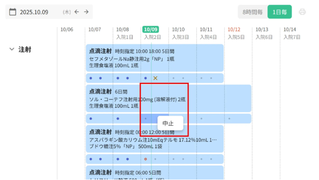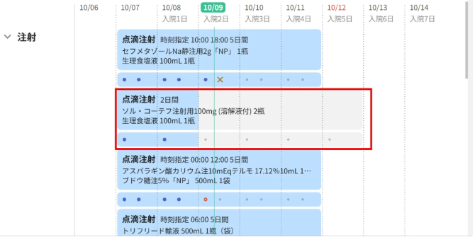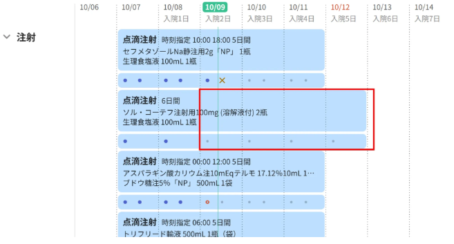 注射オーダーのスケジュールが表示されます
