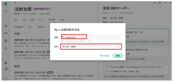 中止日 (スタッフアカウントの場合は医師も)を指定します