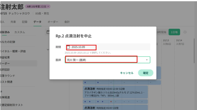 取消したい場合にはそのオーダーの全ての実施記録を削除していただく必要があります
