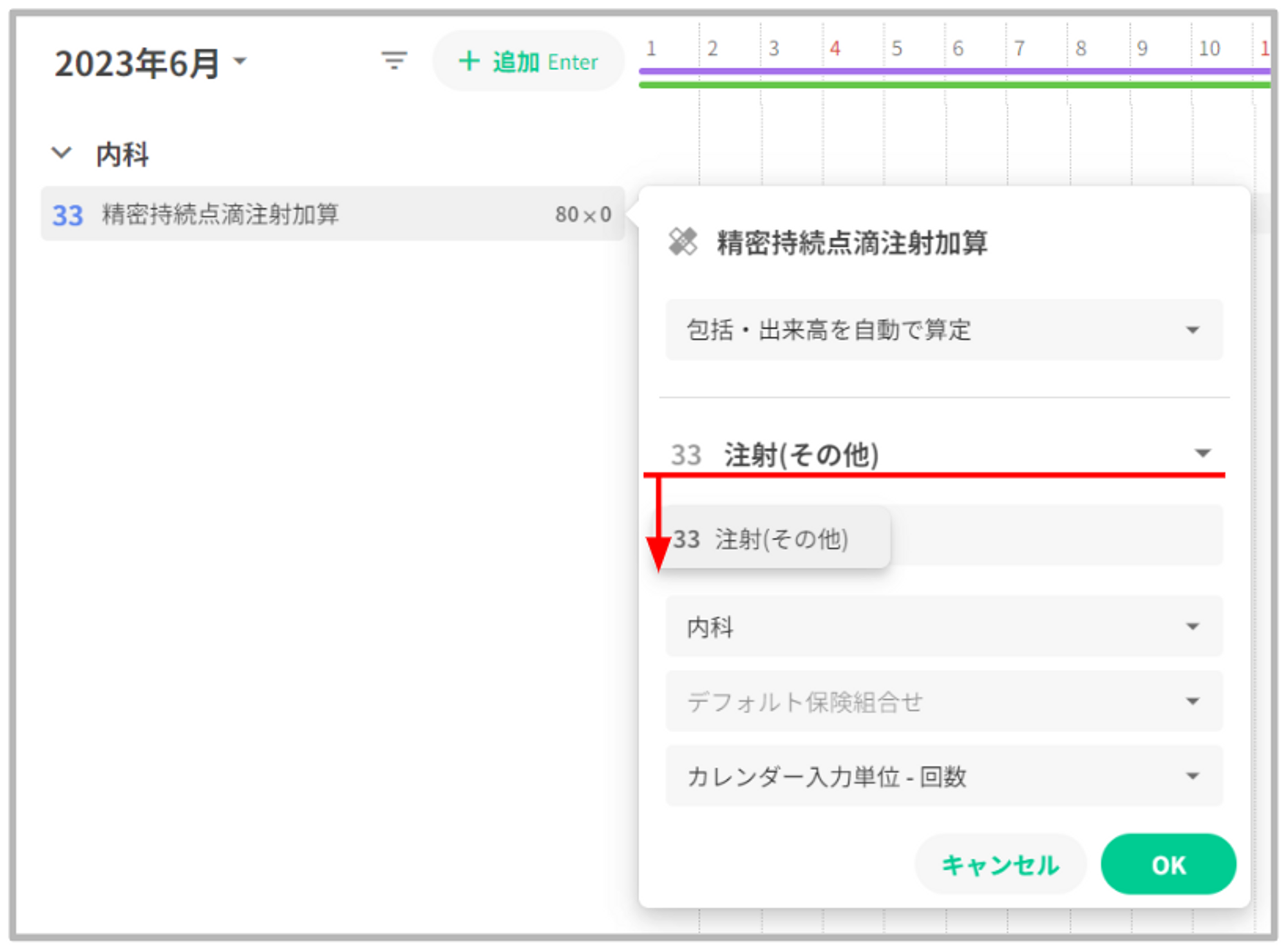 「33 注射(その他)」の算定単位に紐づく項目として検索した場合は、追加することが可能です。