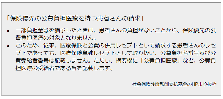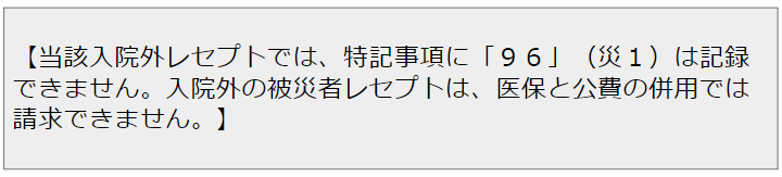 上記エラーメッセージについては、災害公費を使用される場合は、他の公費は使用せず、医療保険単独のレセプトで請求となっているため、エラーとして表示されます。 災害公費を使用する場合は、医療保険単独のレセプトで請求してください。 以下詳細となります。