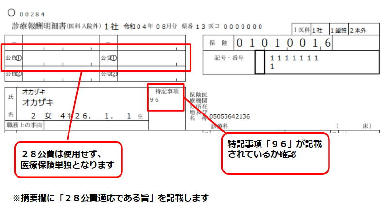 例)社会保険・災害・28公費適応の方のレセプトの場合