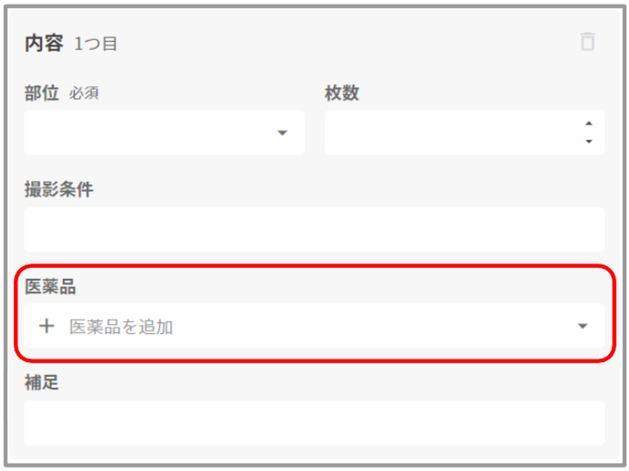 【CT撮影を選択】 「医薬品」の入力が可能です。
