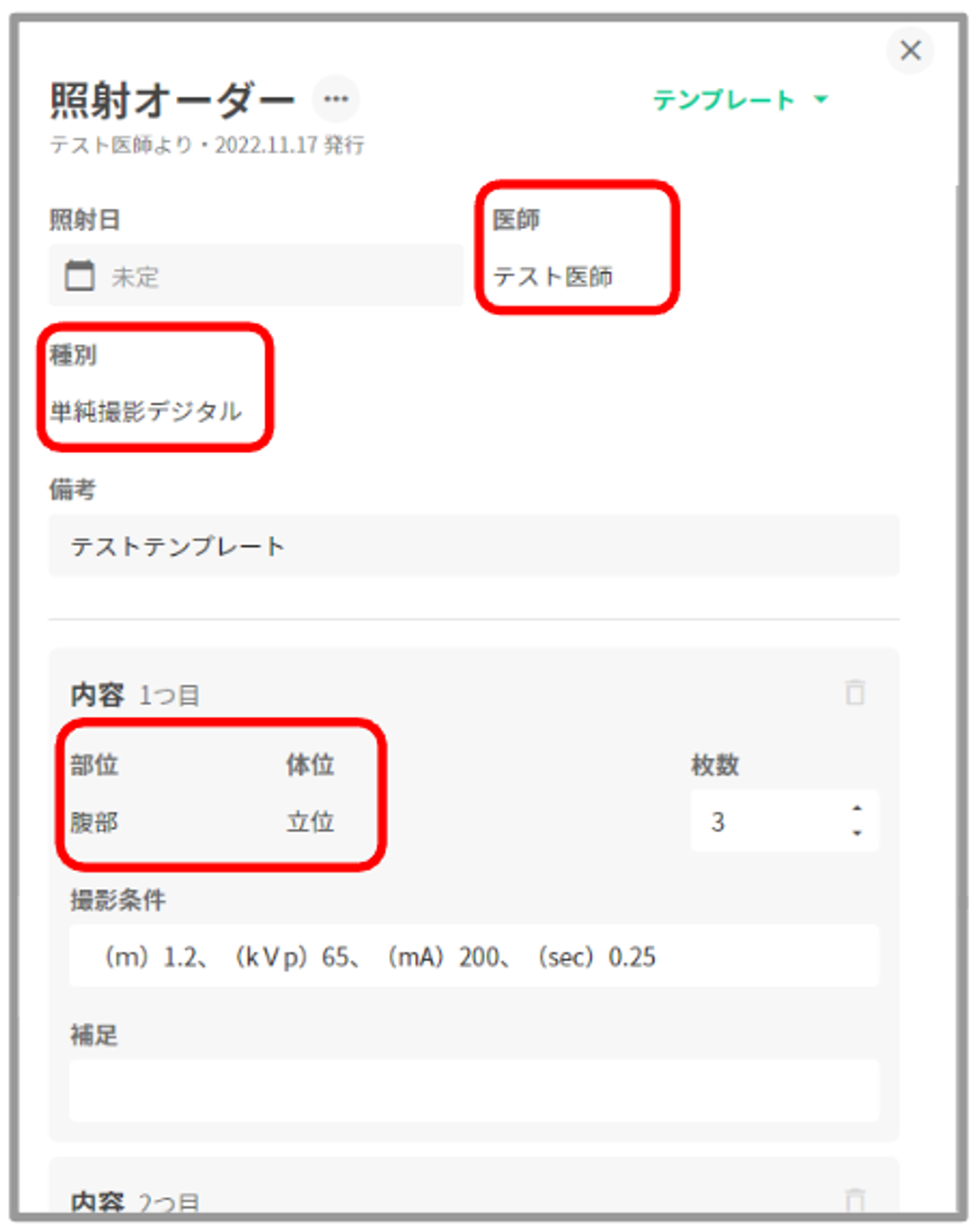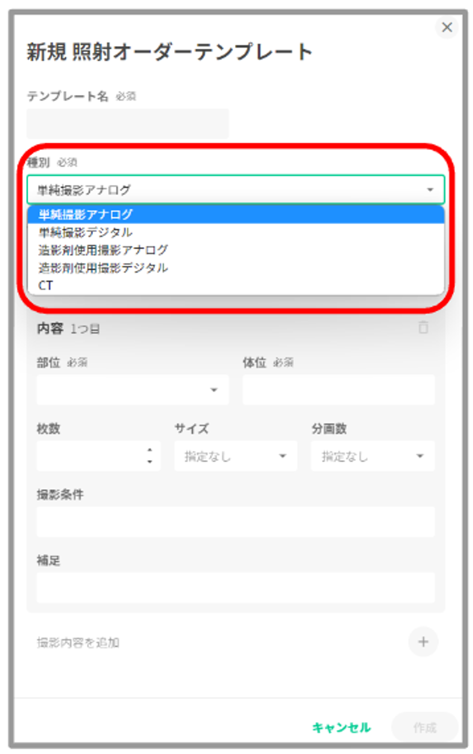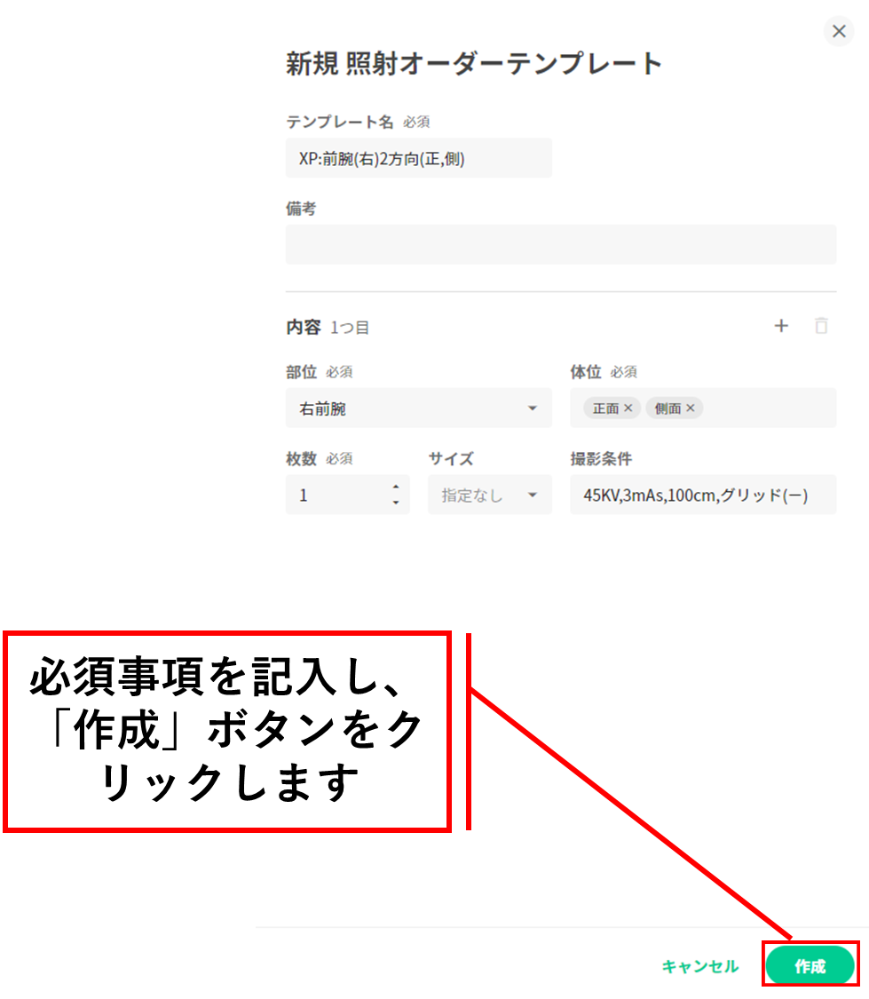 ③撮影種別に対応した入力項目でテンプレート作成できます。