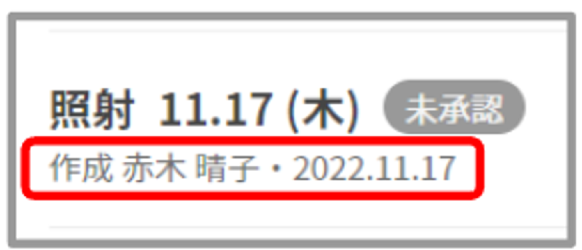 【作成時の情報】 作成者、作成日は「作成 作成者名・日付」と表示されます。