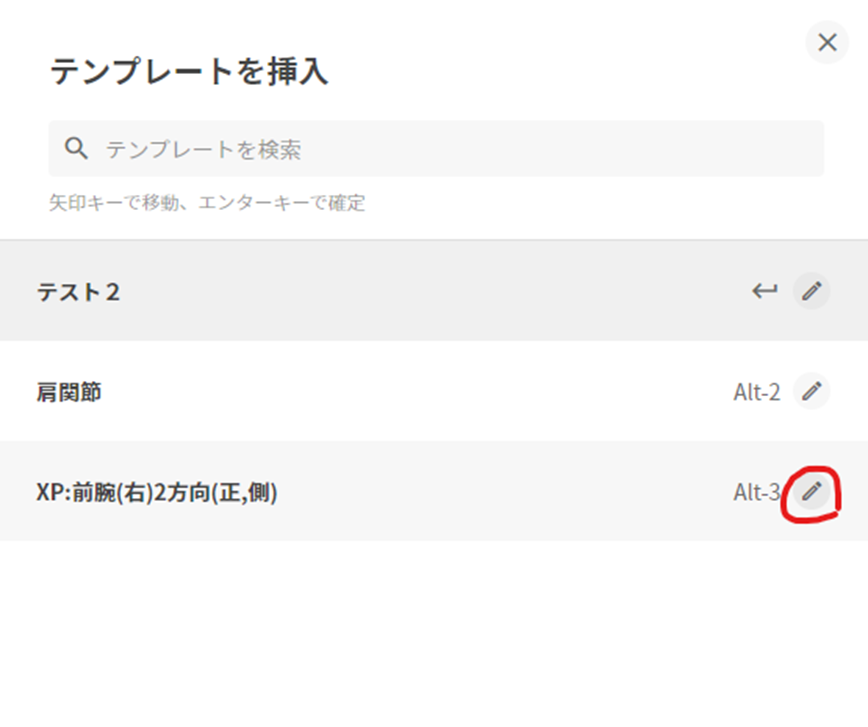 ③編集したいテンプレートの鉛筆マークをクリックし、テンプレート編集画面を開きます。