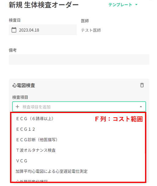 生体検査オーダーテンプレートを作成することで、定型の生体検査オーダーを作成できます。