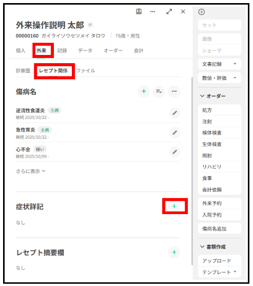 症状詳記について会計画面を例に、症状詳記の追加・編集・削除方法についてご案内します
