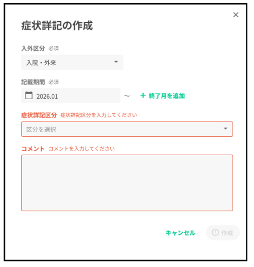 コメント | 症状や算定理由など、補足したい内容を入力します |