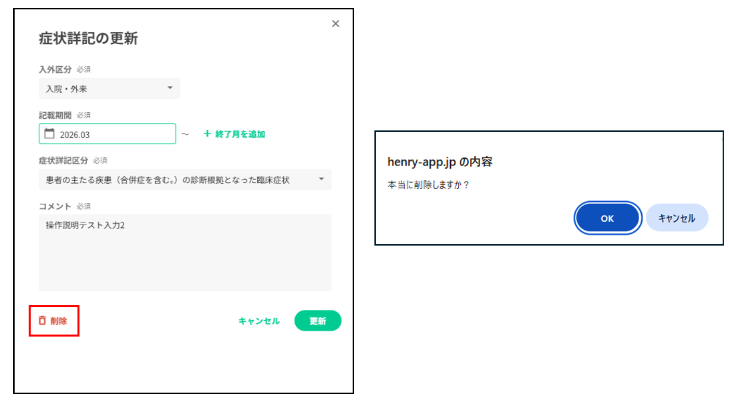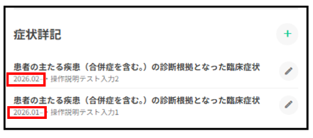 登録された症状詳記は、記載期間の開始年月が新しい順に表示されます
