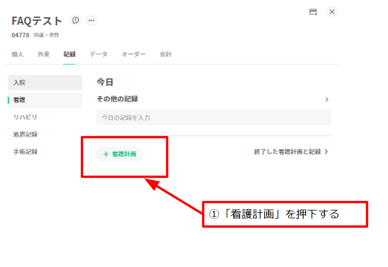 1. 看護計画を押下する