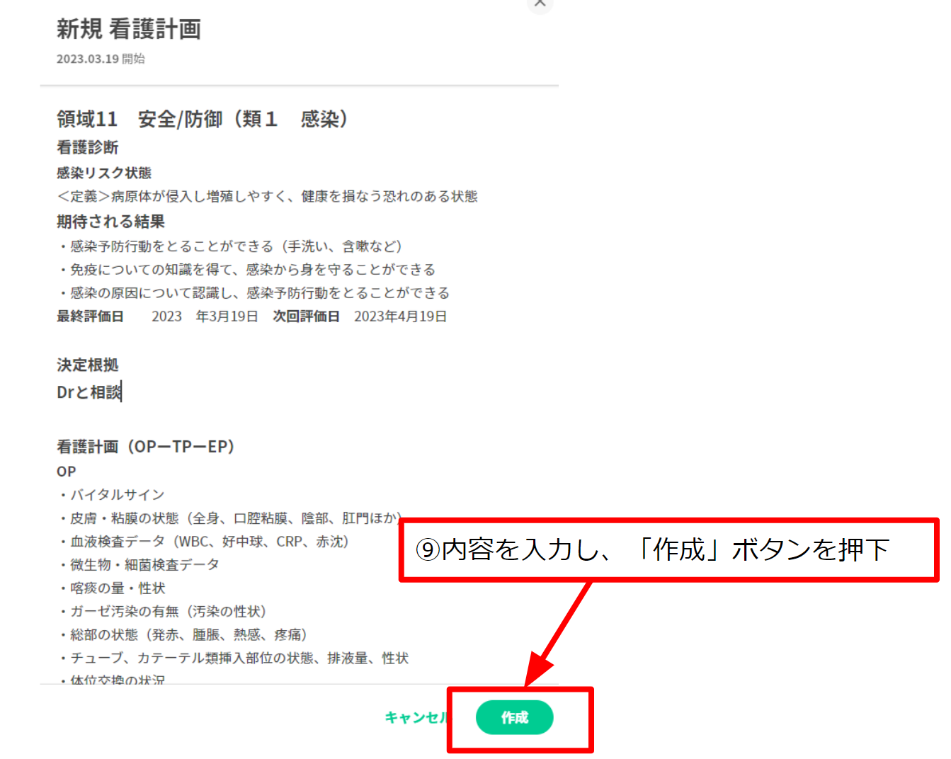 9.内容を入力し、「作成」ボタンを押下