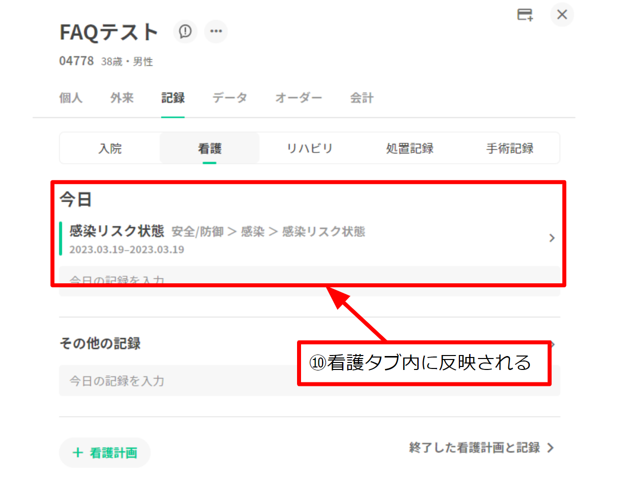 10.看護タブ内に反映される