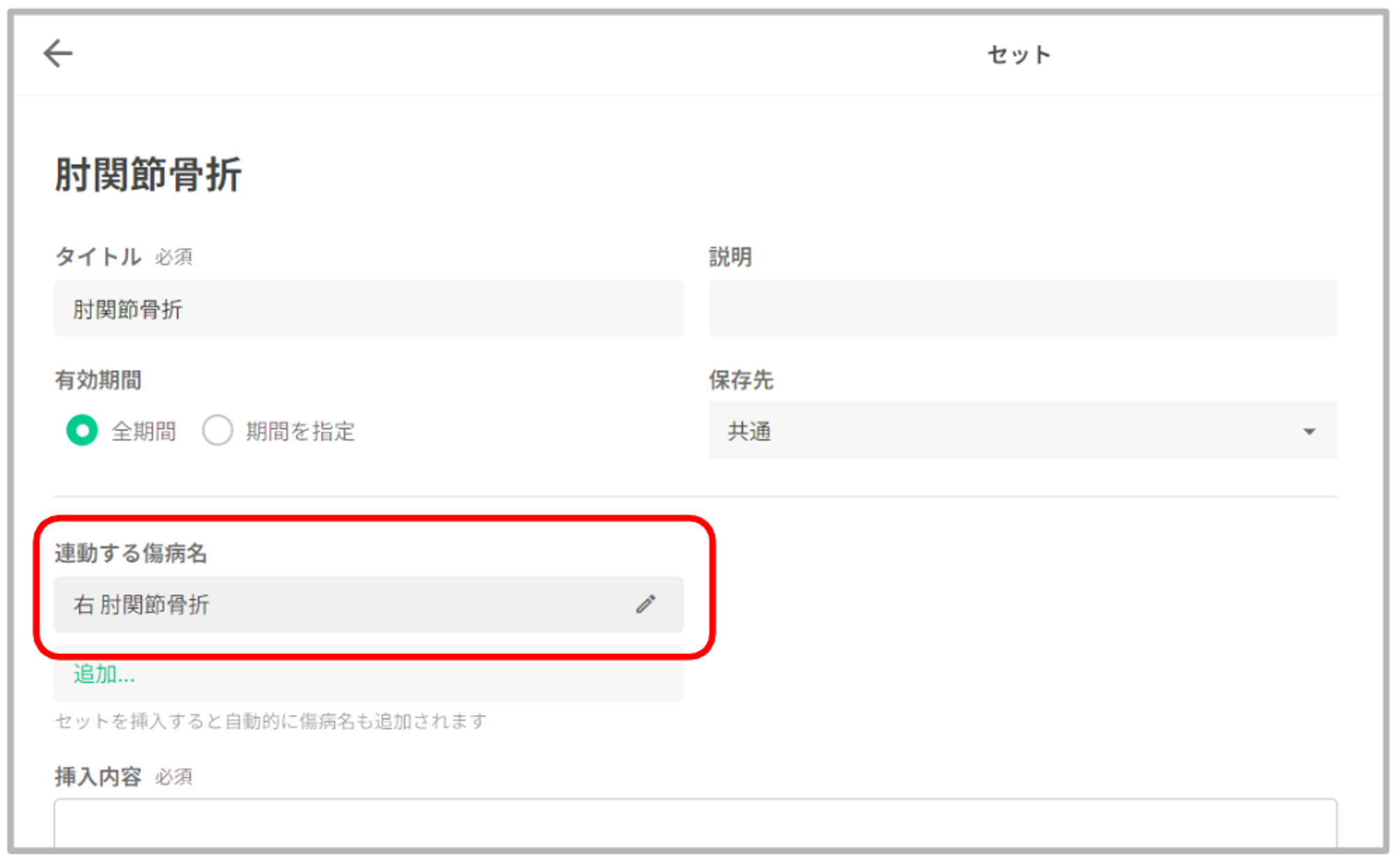 疑い傷病名が既に登録されている場合、セットより追加した確定傷病名が追加されます。