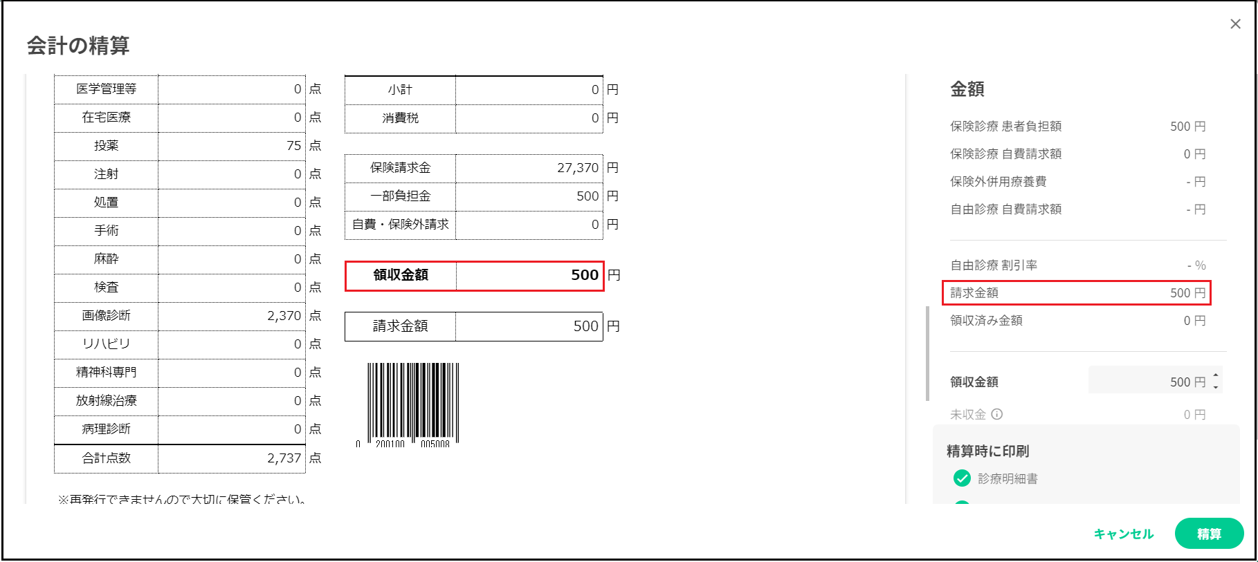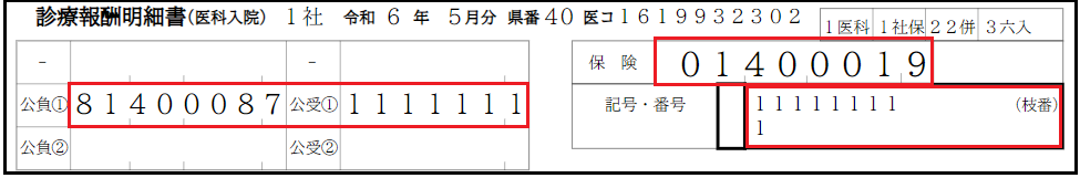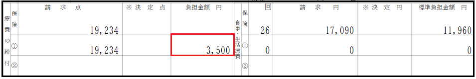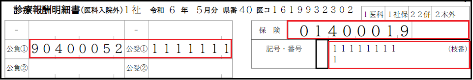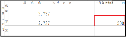 社保・国保ともに以下のように併用レセプトとなります。 ※請求点数に対して、外来は上限の500円・入院は上限の3500円で一部負担金が出力されます