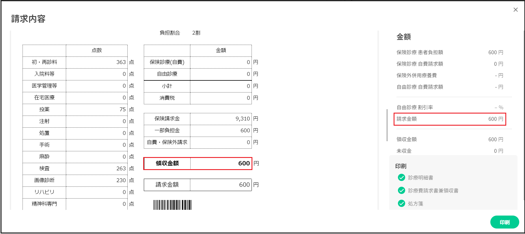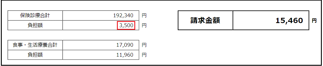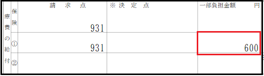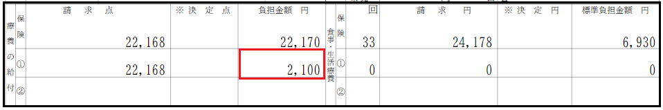 【例】障・入院7日・非課税の場合(入院) - 1日300円・月7日限度で上限2100円の一部負担金が発生します。 ※請求点数に対して、上限の2100円で一部負担金が出力されます