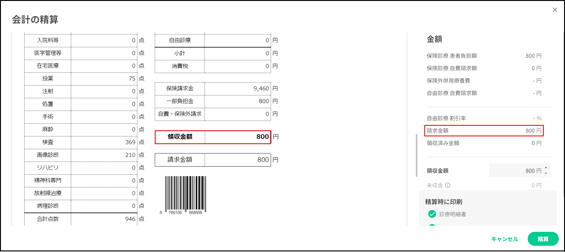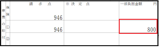 社保・国保ともに以下のように併用レセプトとなります。 ※請求点数に対して、外来は上限の800円・入院は上限の3500円で一部負担金が出力されます