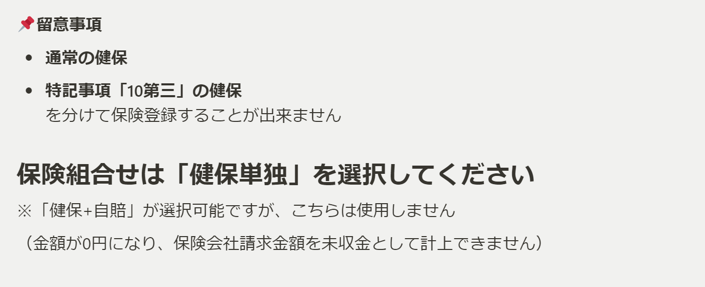 ※「事故」「事故外」が1枚の請求書になってしまう為