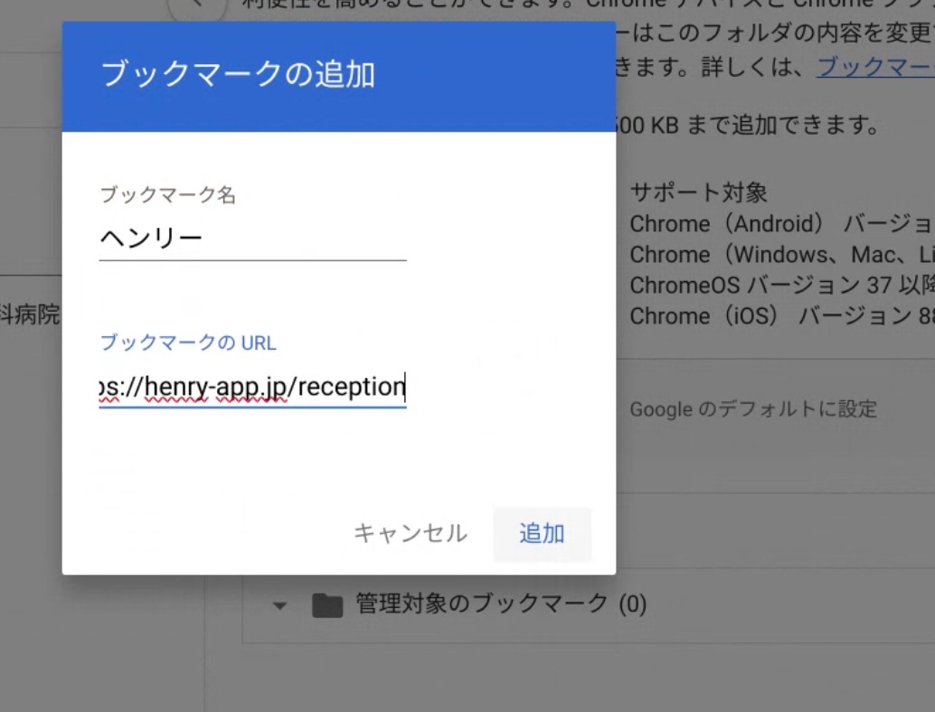 「管理対象のブックマーク」だと長いので「Henry」などに変更をお勧めします