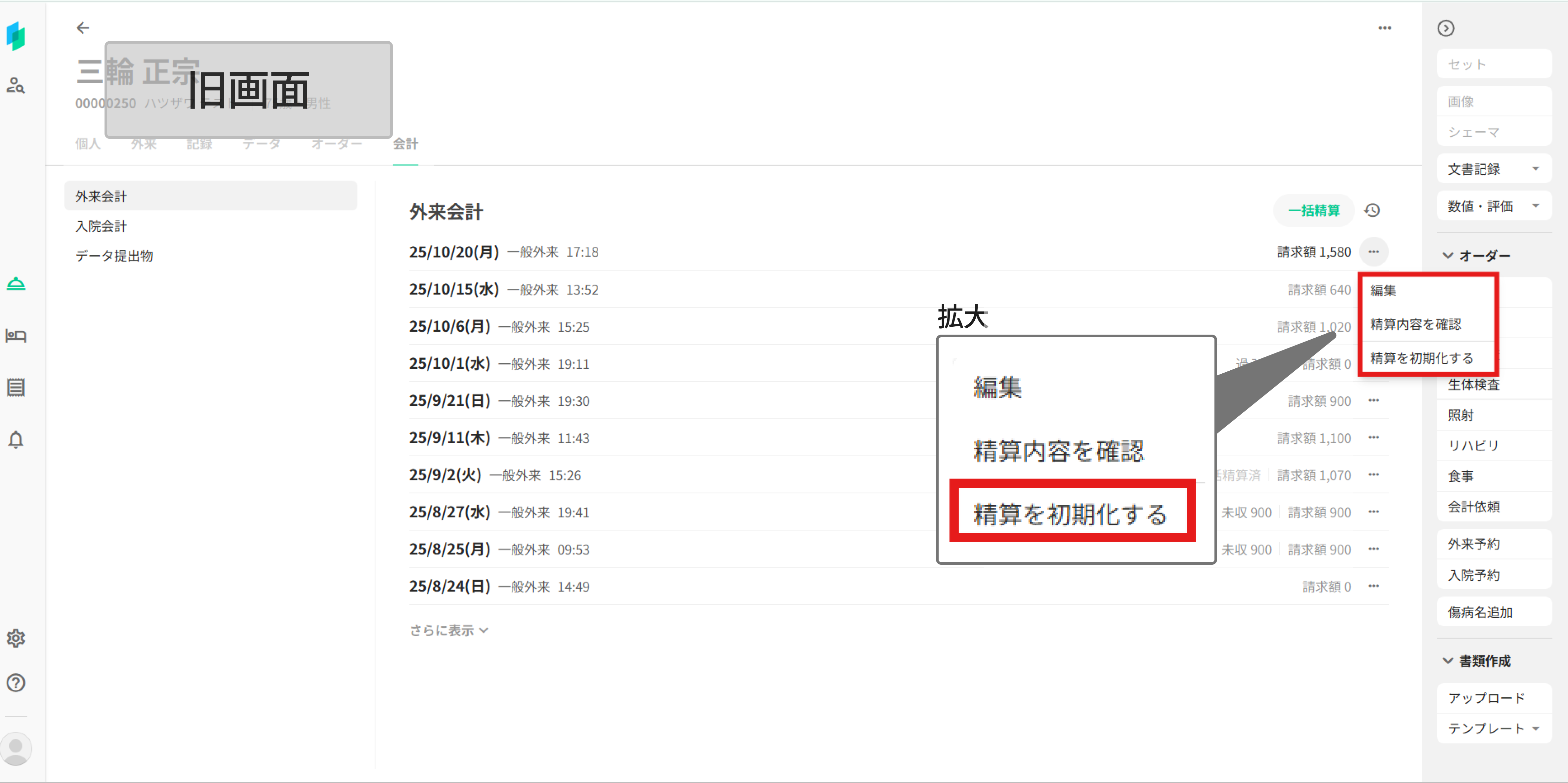 従来の「精算を初期化する」は、請求を削除、領収額の編集、領収の削除の機能がなかったために「会計処理のやり直し」目的で頻繁に使用されていました。