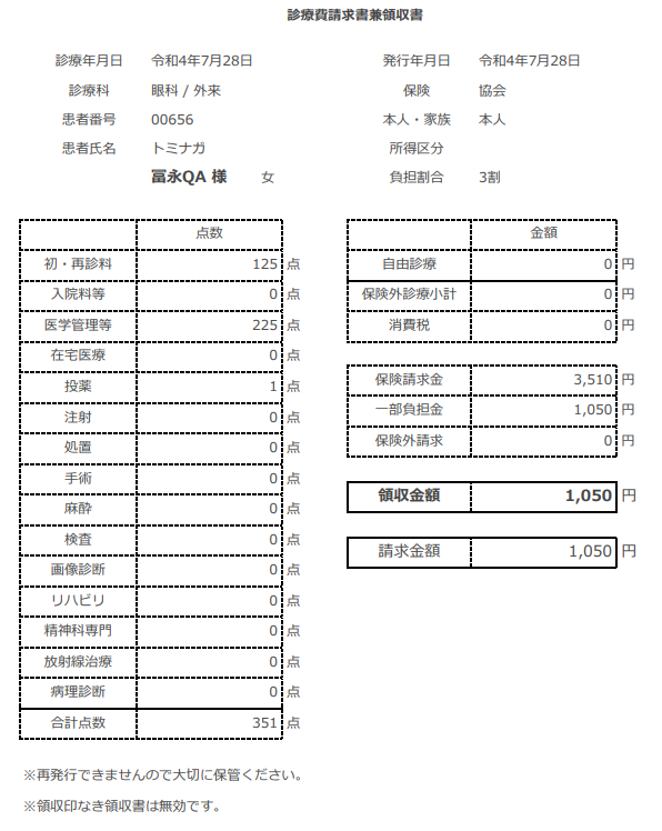 5.「再精算」より精算の確定を行うと、初期状態と同じ様式の領収書が発行されます