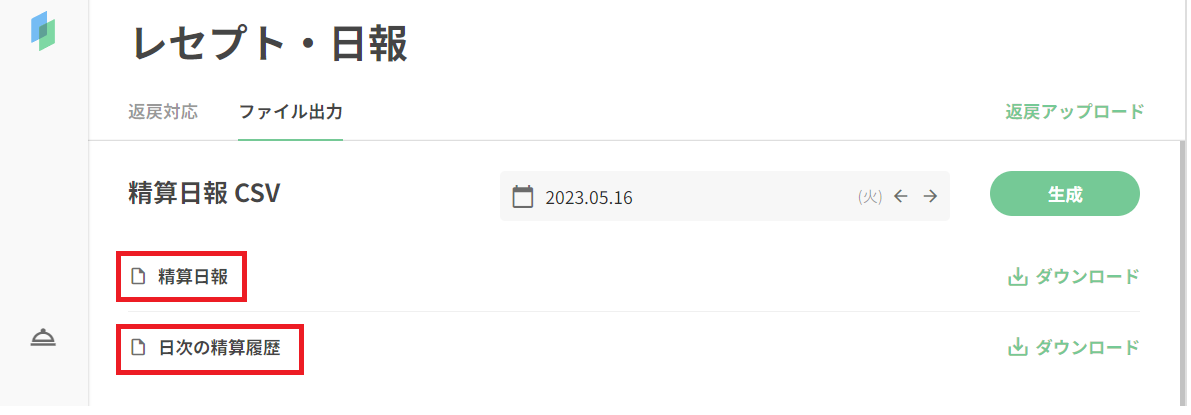 指定した日時で精算した金額の一覧がCSVファイル形式で出力できます。