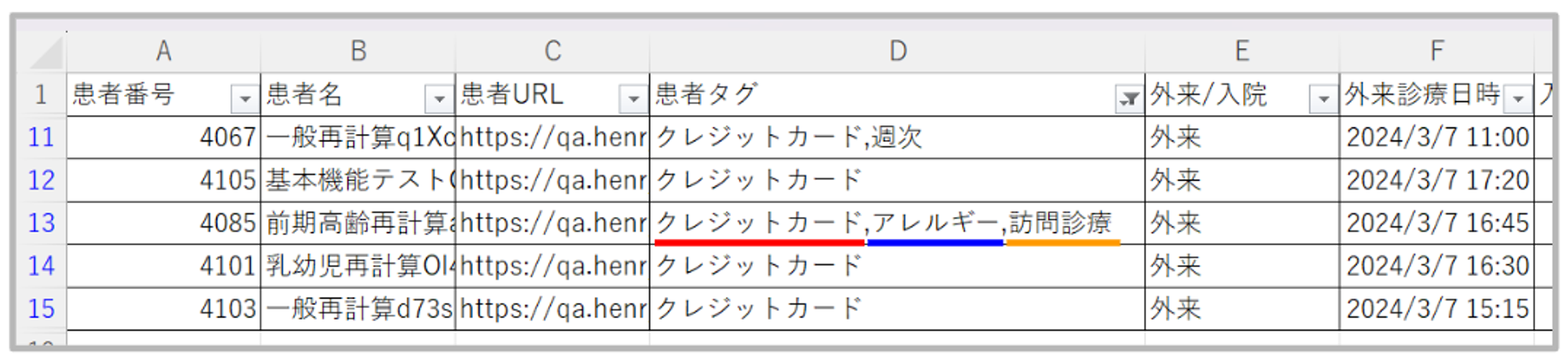 3 | 患者URL | 該当患者基本情報のHenry上のURL | |