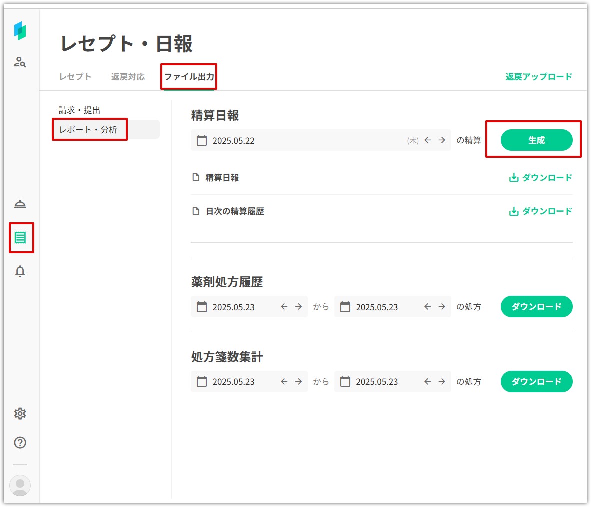 精算日報は、医療機関の窓口において患者様から実際に受領した金額を集計・確認するための帳票です。