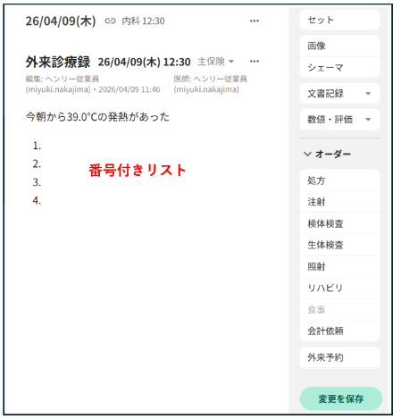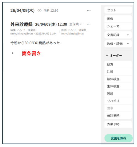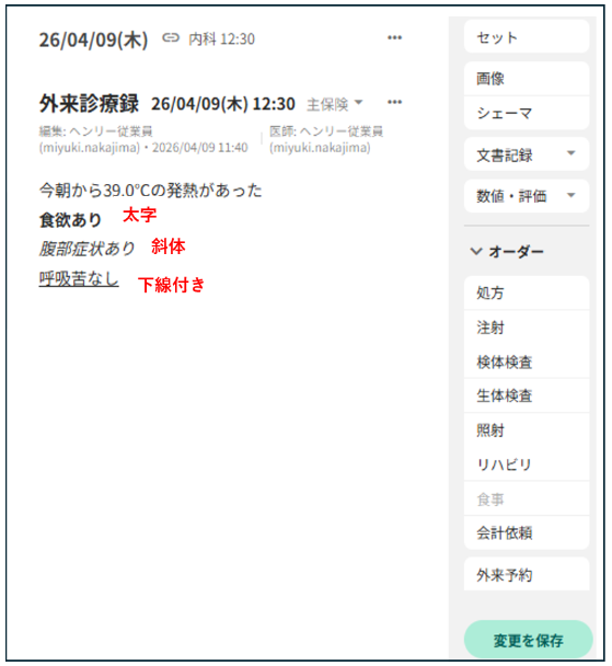 診療録・看護記録・各コメディカルの記録における、文字入力・装飾、および画像・図(シェーマ)の挿入方法について説明します。
