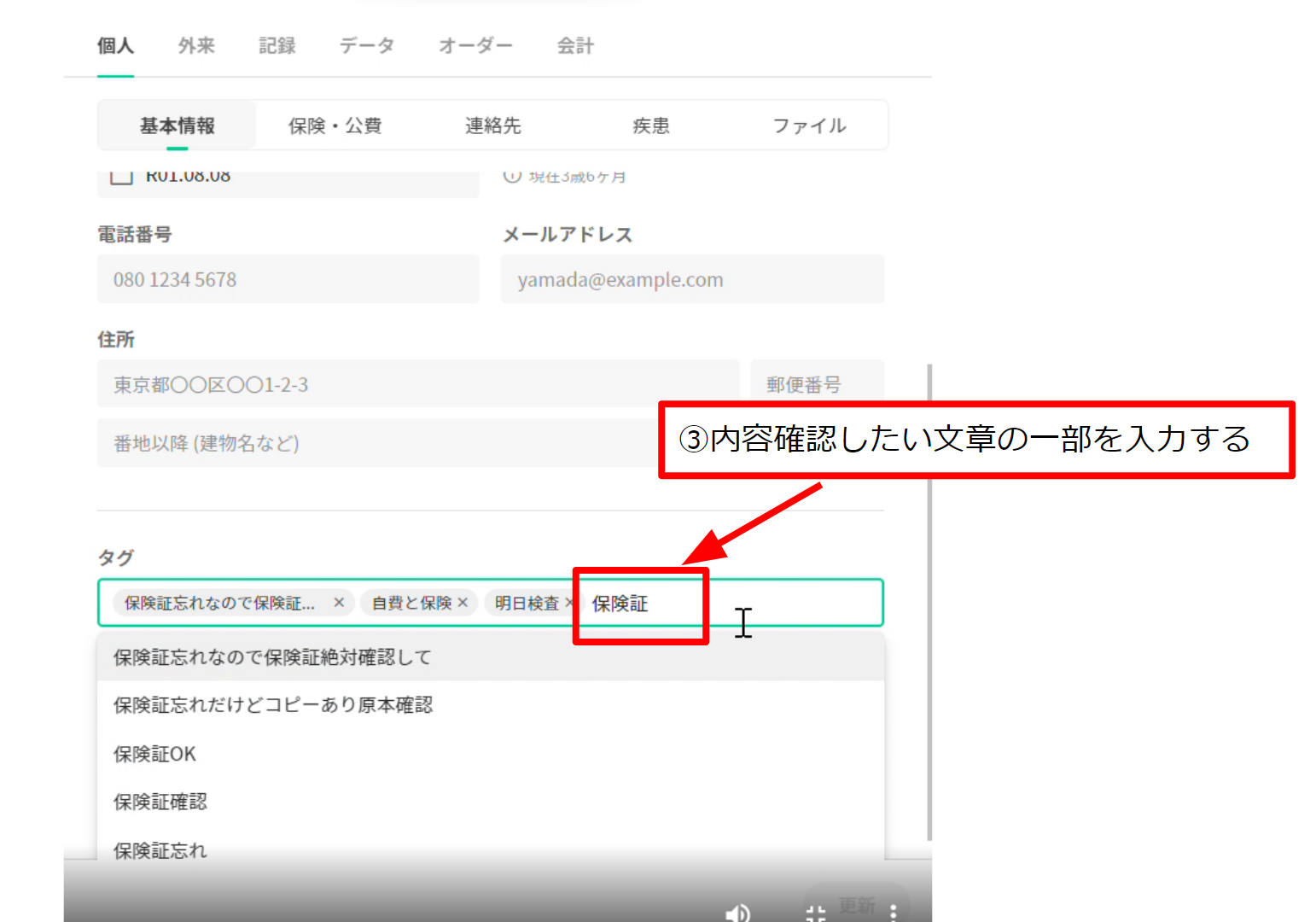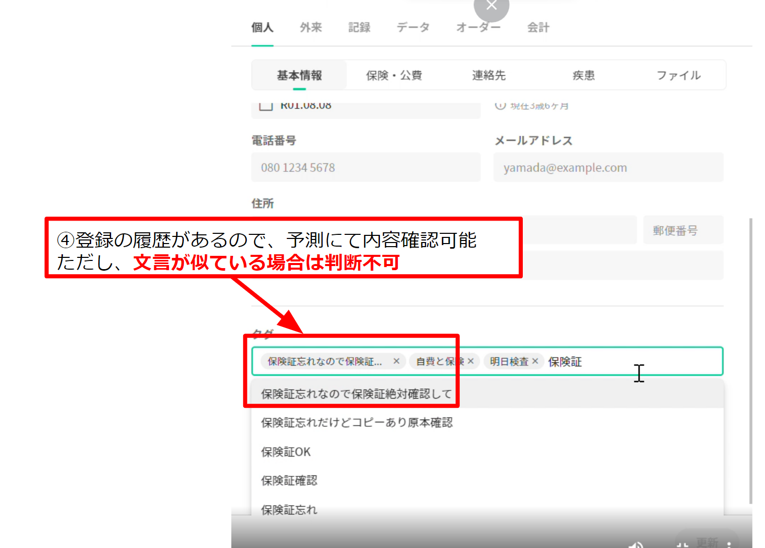 4.登録の履歴があるので、予測にて内容確認可能。 ただし、文言が似ている場合は判断不可