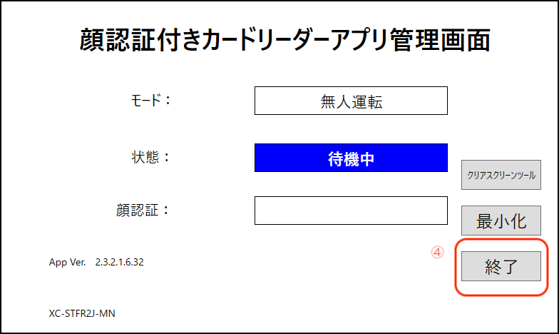 顔認証端末を再起動する