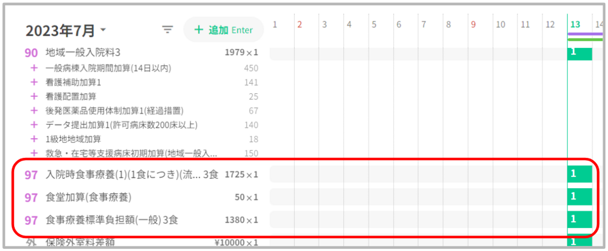 食事オーダーの内容が流動食(経管食)のみの場合、「特別食加算を算定」が有効であっても特別食加算が自動算定されません。