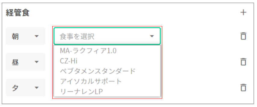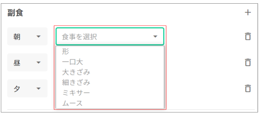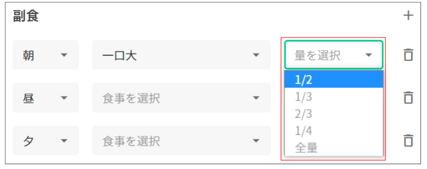 ※食事(副食)を選択すると、量を設定する欄が表示されます。