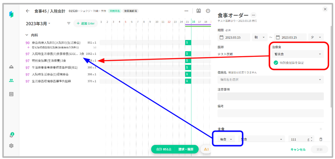 特別食加算を算定」を有効にした場合はコスト連携時に特別食加算も自動算定されます。食事オーダーと給食システムの連携や食札印刷は現状未実装ですので、予めご了承ください。