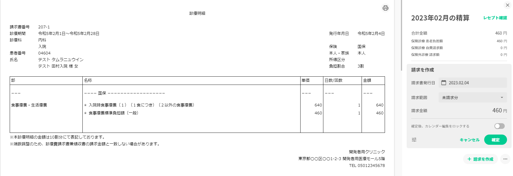 1.患者へ請求する場合「入院時食事療養費」と「食事療養標準負担額」をそれぞれ入力してください。💡特別食加算算定する場合は、上記項目に追加してください。2.患者へ請求しない場合「入院時食事療養費」を入力してください。💡特別食加算算定する場合は、上記項目に追加してください。
