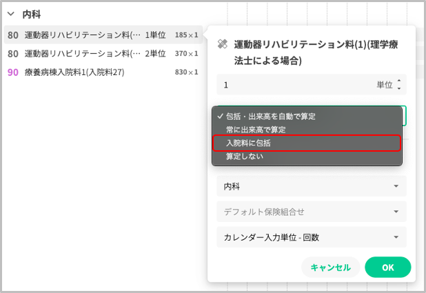 コストカレンダー(以下、コスカレ)の包括・出来高区分に新たに「入院料に包括」という選択肢を追加いたしました。